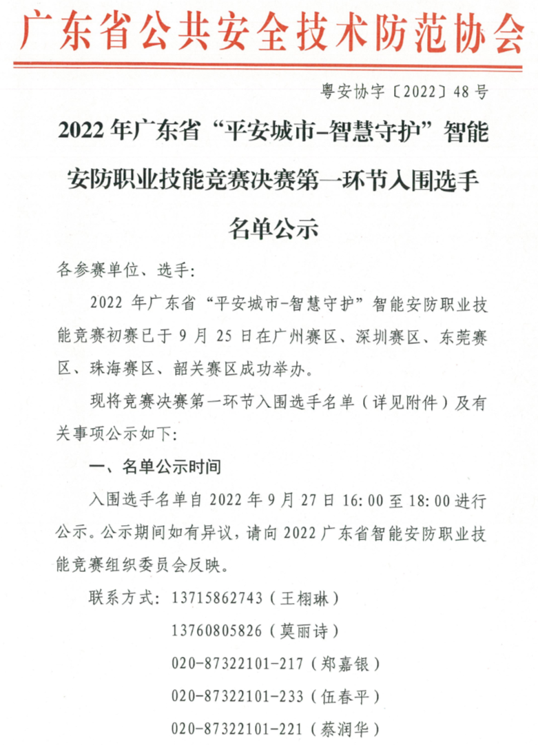 关于延期举办2022年广东省“平安城市-智慧守护”智能安防职业技能竞赛的通知