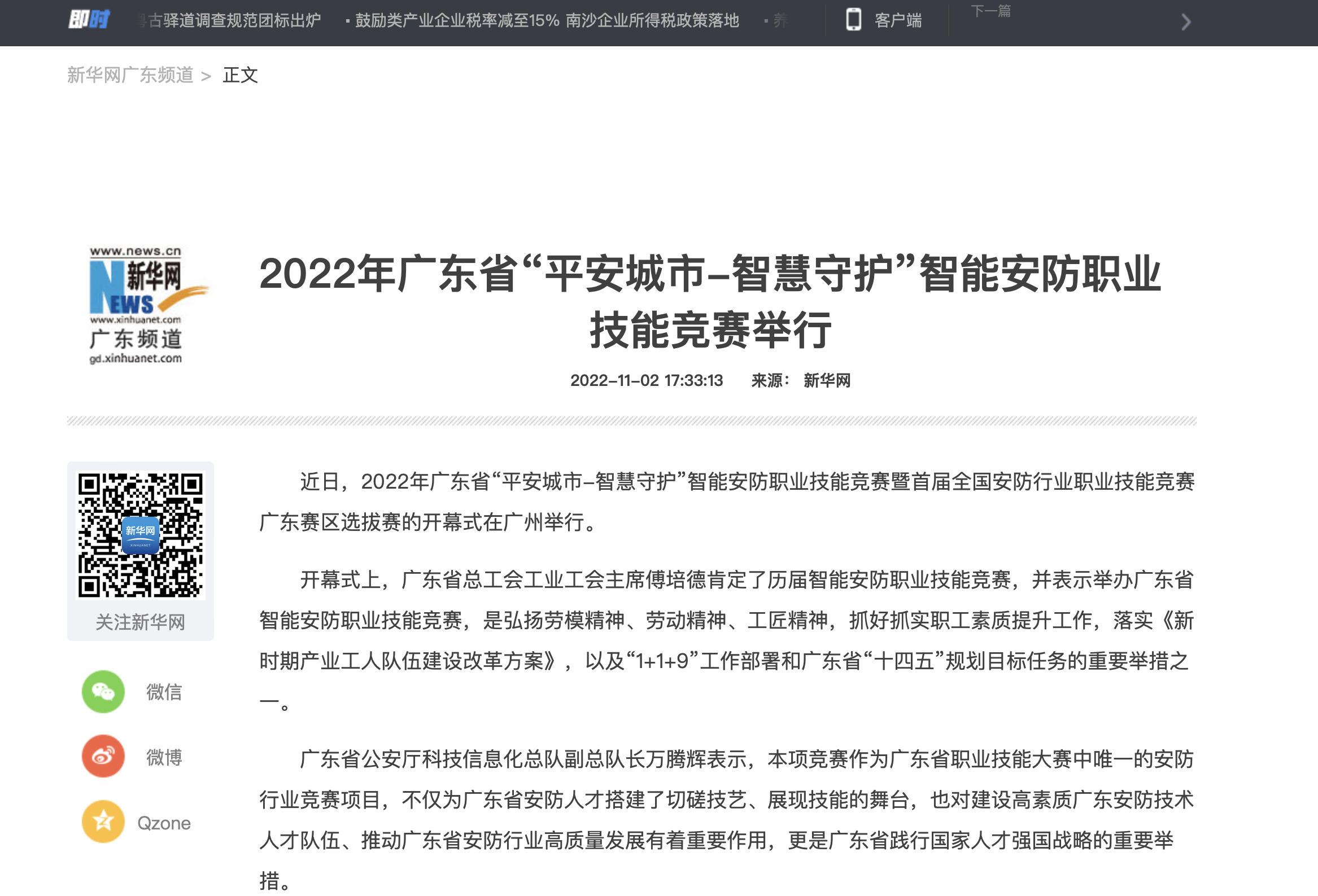 本次竞赛得到了新华网、中国日报、广东电视台、南方网、新浪网、腾讯网、技能中国、慧聪网、千家网、智慧城市网等近20家媒体重点报道和认可。经过竞赛组委会四年的不懈努力,广东智能安防职业技能竞赛的品牌已全面打响!