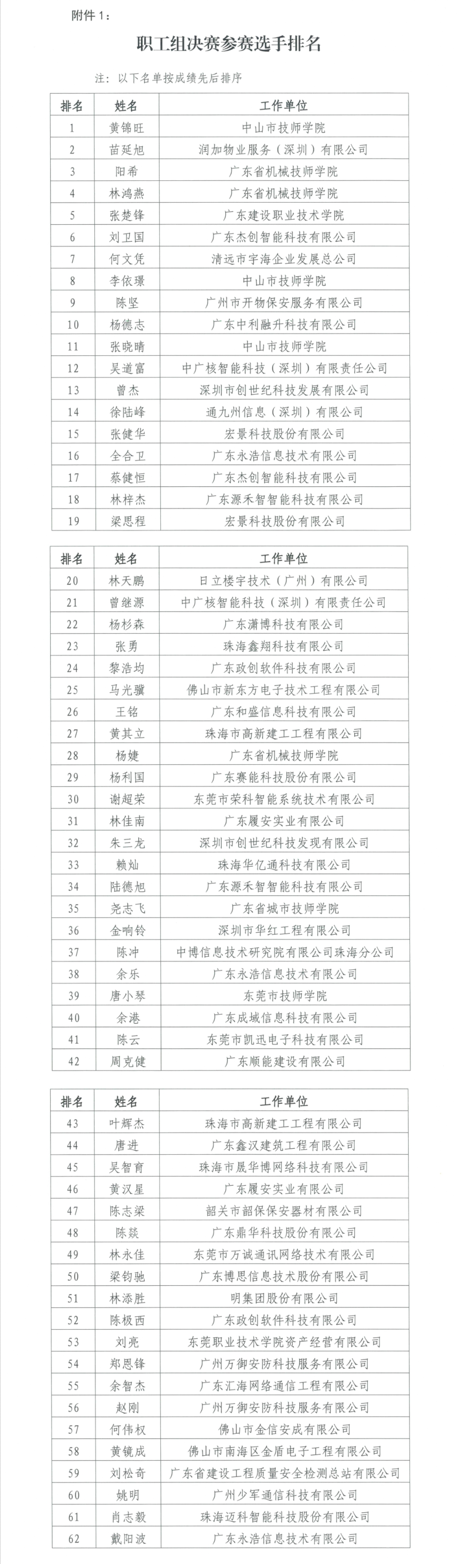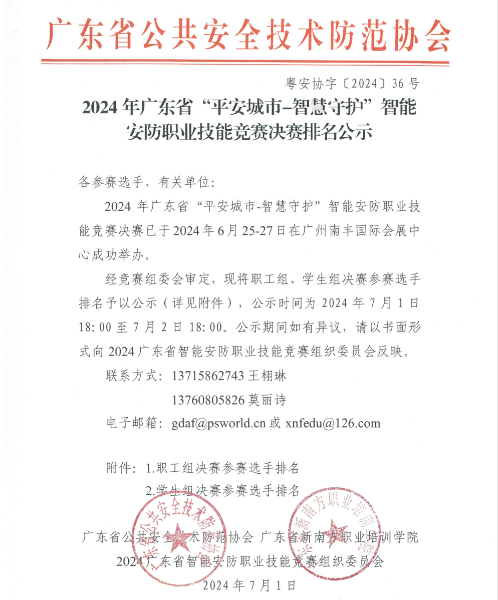 2024年广东省“平安城市-智慧守护”智能安防职业技能竞赛(职工组)决赛人围选手名单公示
