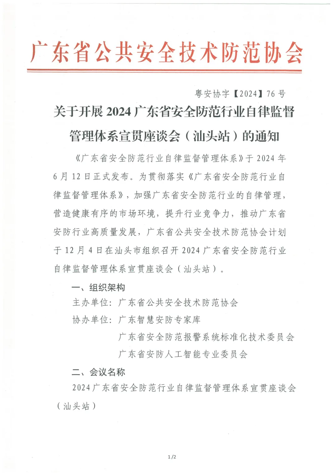 (揭阳)关于开展2024广东省安全防范行业自律监督管理体系宣贯座谈会的通知