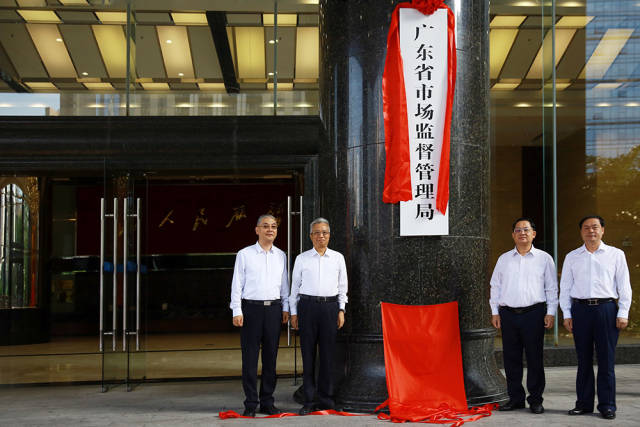 广东省市场监督管理局(知识产权局)挂牌成立,标志着广东市场监管体制改革迈出了实质性、关键性的第一步,全省市场监管事业发展迈入了一个崭新的时代。根据《广东省机构改革方案》,新组建的广东省市场监督管理局整合了原省工商行政管理局、原省质量技术监督局、原省食品药品监督管理局、原省知识产权局的职责,以及省发改委的价格监督检查与反垄断执法职责、省商务厅的经营者集中反垄断职责等。不再保留省工商行政管理局、省质量技术监督局、省食品药品监督管理局,不再保留单设的省知识产权局。省市场监督管理局加挂省知识产权局牌子。省食品安全委员会具体工作由省市场监督管理局承担。同时,组建广东省药品监督管理局,作为省市场监督管理局的部门管理机构;组建广东省知识产权?;ぶ行?,为省市场监督管理局管理的事业单位。